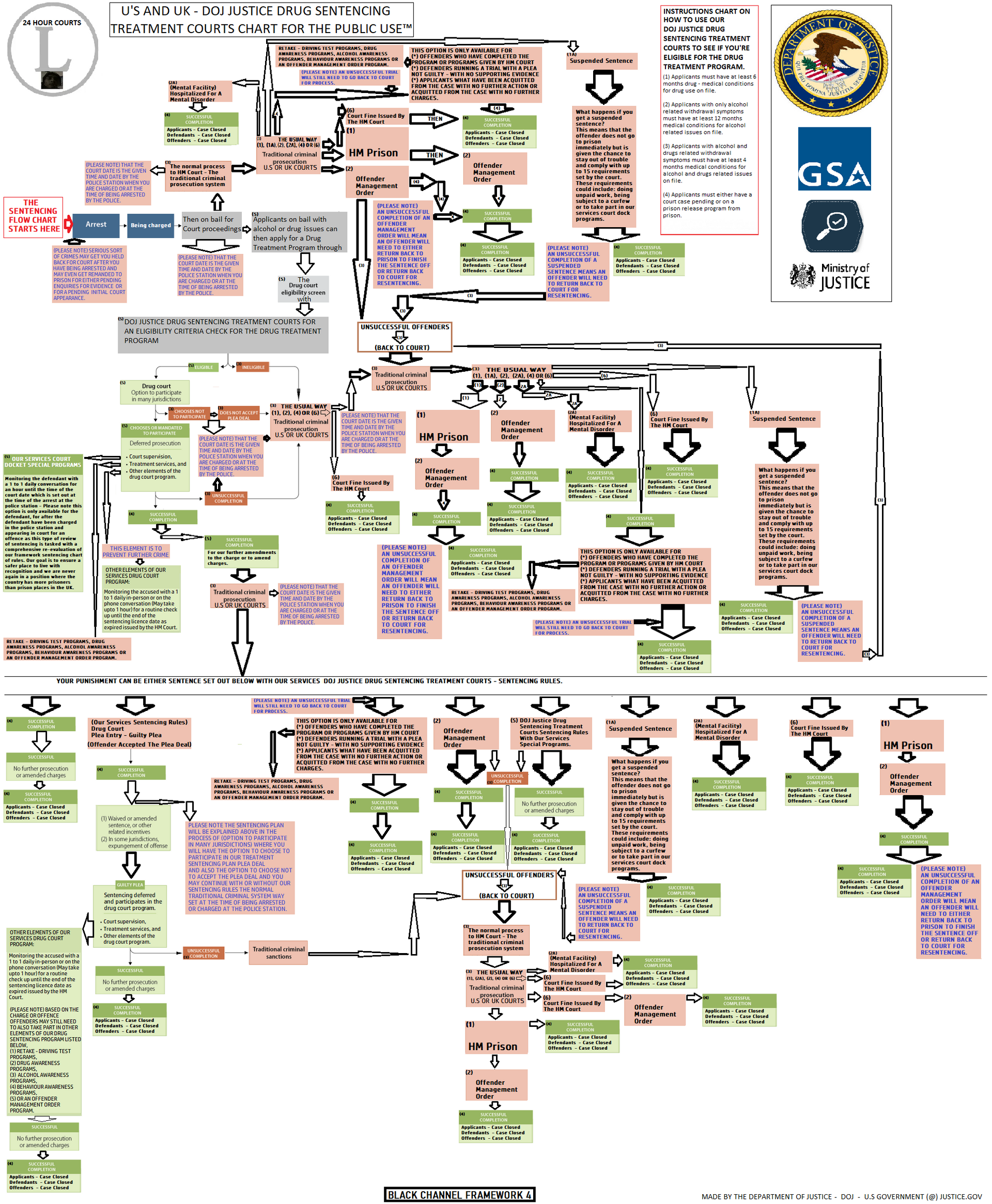 INSTRUCTIONS CHART ON HOW TO USE OUR DOJ JUSTICE DRUG SENTENCING TREATMENT COURTS TO SEE IF YOU'RE ELIGIBLE FOR